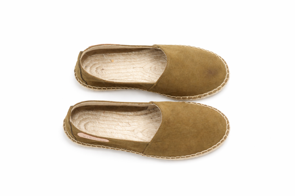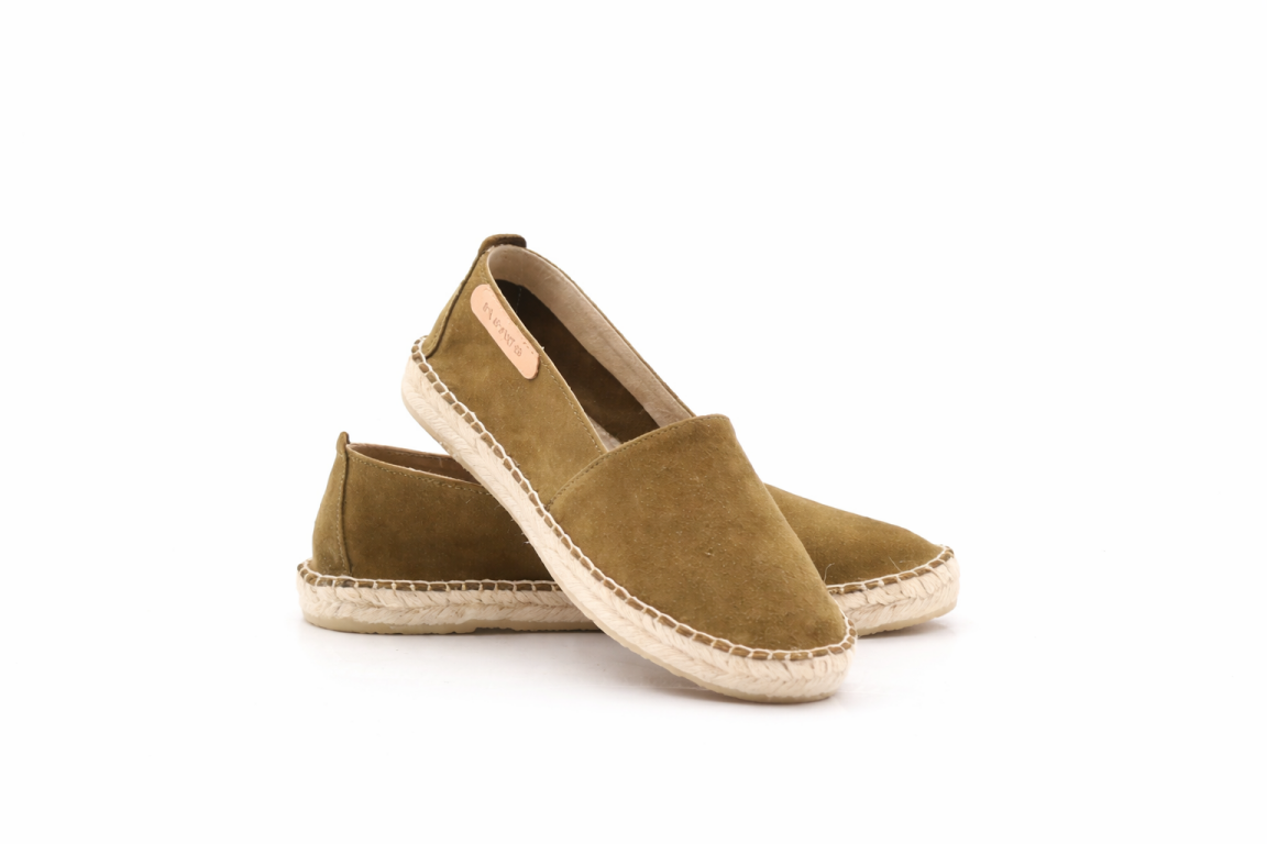 Alpargata em camurça, produzida artesanalmente em Espanha, com palmilha forrada a juta para maior conforto.