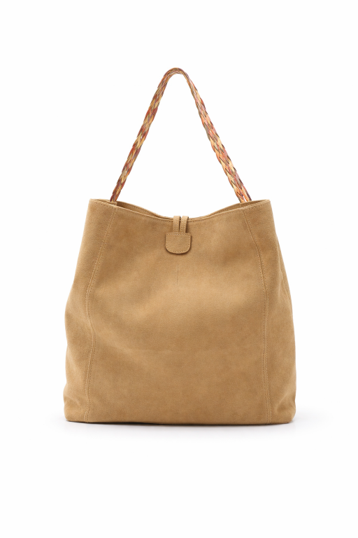 Mala de ombro grande em camurça bege