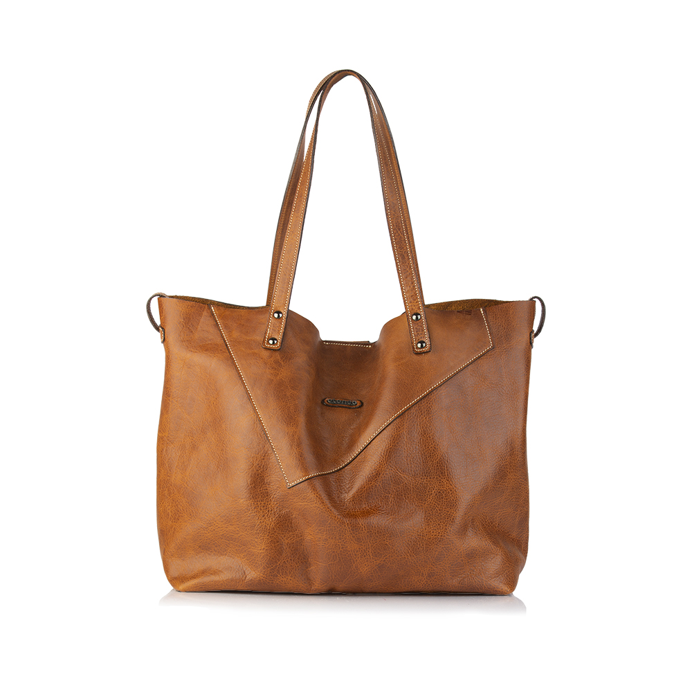 Mala grande de ombro de duas alças com mola magnética no bolso principal. Bolsa interior fixa. Três bolsos interiores e logótipo em metal aplicado diretamente na pele.