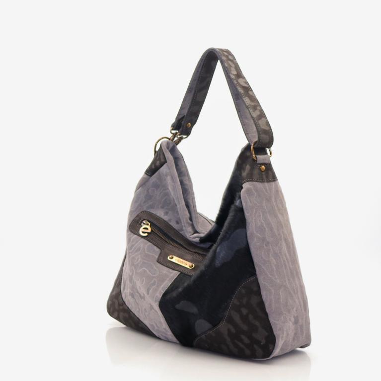 Mala em pele grande de uma alça biposicional de ombro. Fecho de correr no bolso principal, frontal e traseiro.Três bolsos interiores Logótipo de metal aplicado diretamente na pele.