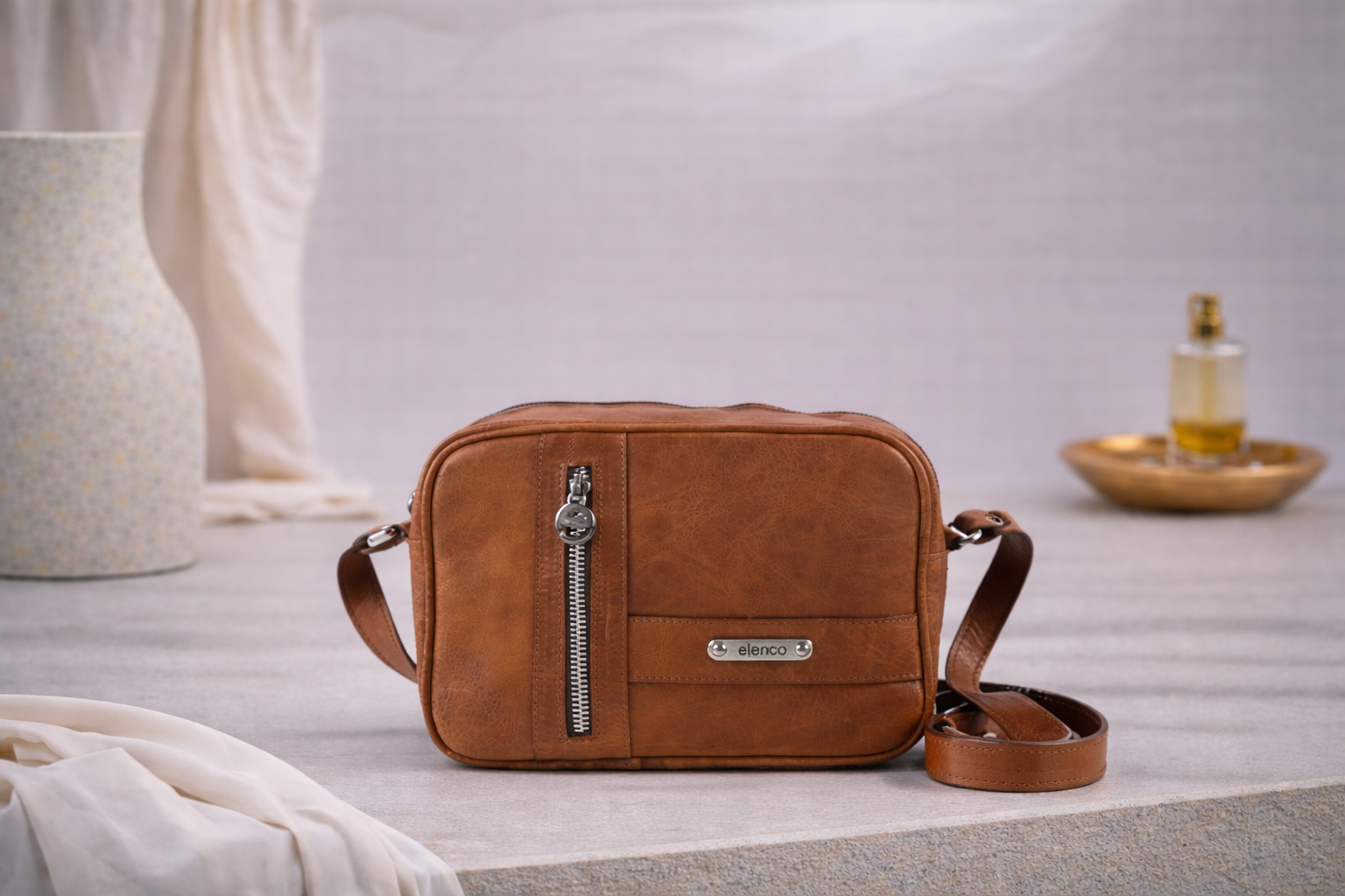 Crie laços duradouros com a sua mala Elenco, evitando a exposição prolongada à luz intensa e o contacto com produtos oleosos, com solventes ou álcool (como perfume, por exemplo). Proteja-a da chuva forte e evite o contacto com superfícies abrasivas que podem danificar a pele. Nas malas Elenco de tons escuros, evite o contacto prolongado com tecidos de cores claras, especialmente em ambientes húmidos; nas malas Elenco de tons claros, evite o atrito com outros materiais ou impressões cujas cores se possam desgastar (como jeans, por exemplo). Aconselhamos, ainda, que guarde a sua mala Elenco no saco de pano que lhe oferecemos a cada encomenda, longe de fontes de luz, humidade e calor.
