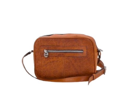 Mala pequena com alça a tiracolo. Fecho éclair principal com três separadores, um traseiro, um frontal e três interiores. aba com mola magnética. Logótipo de metal aplicado na pele.