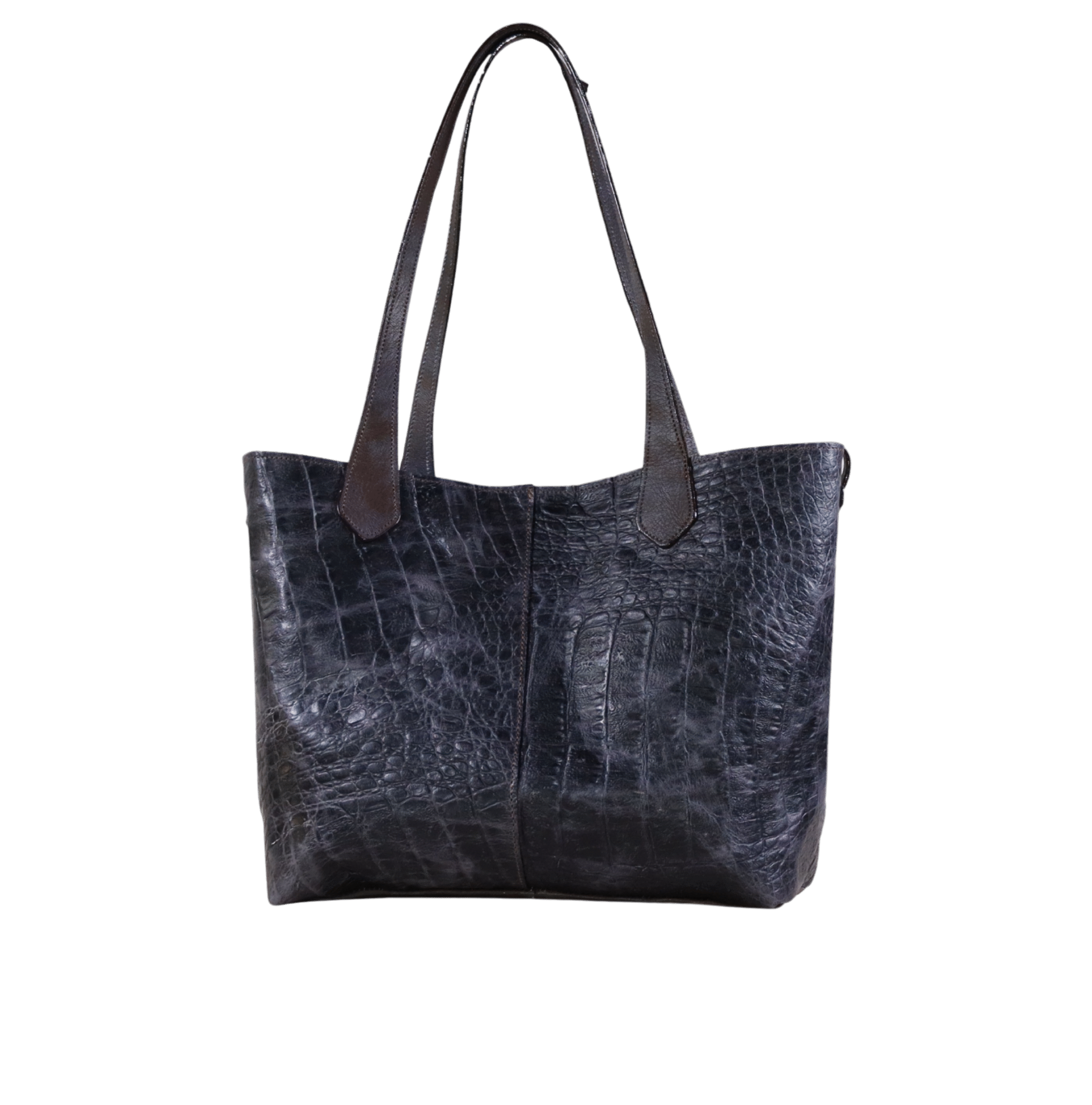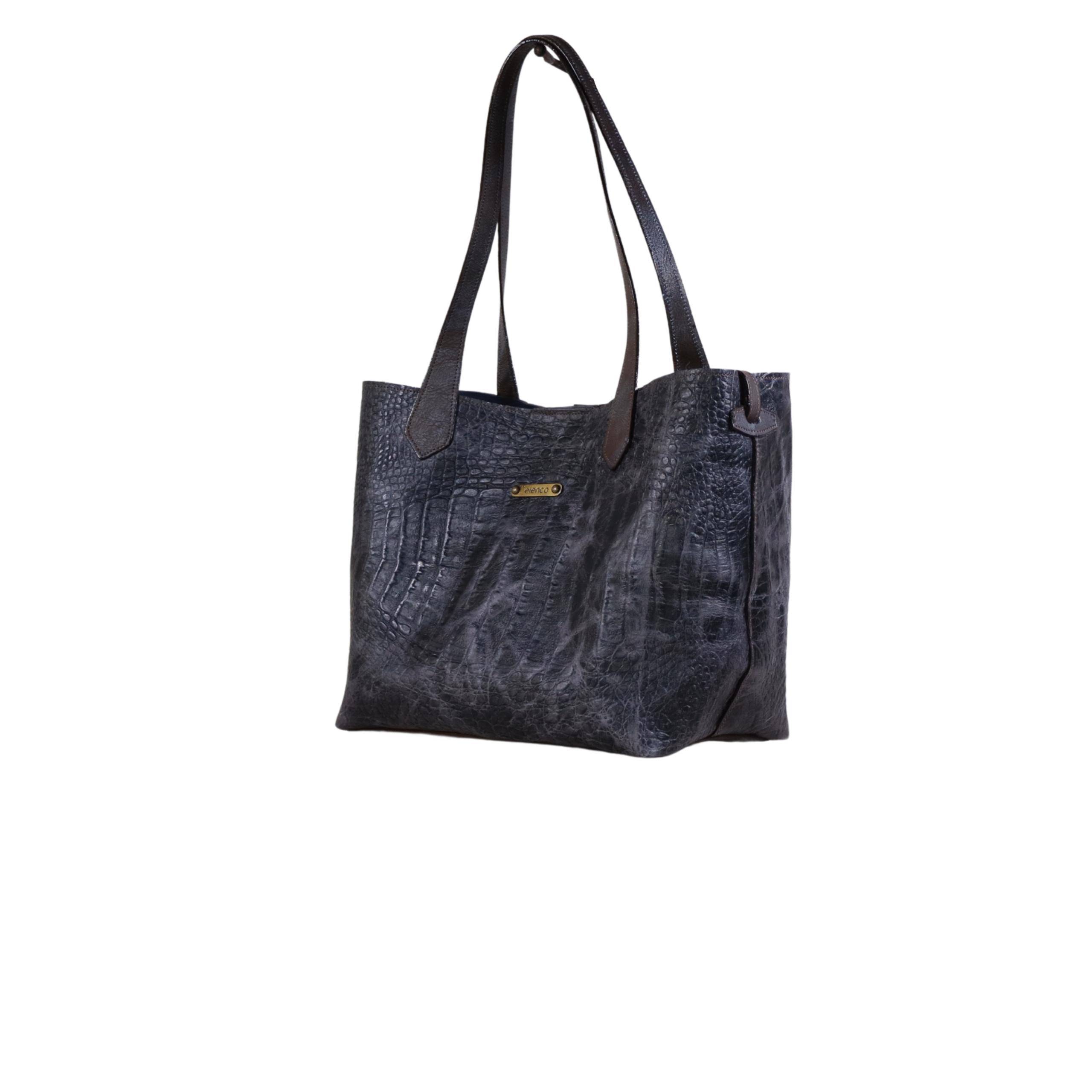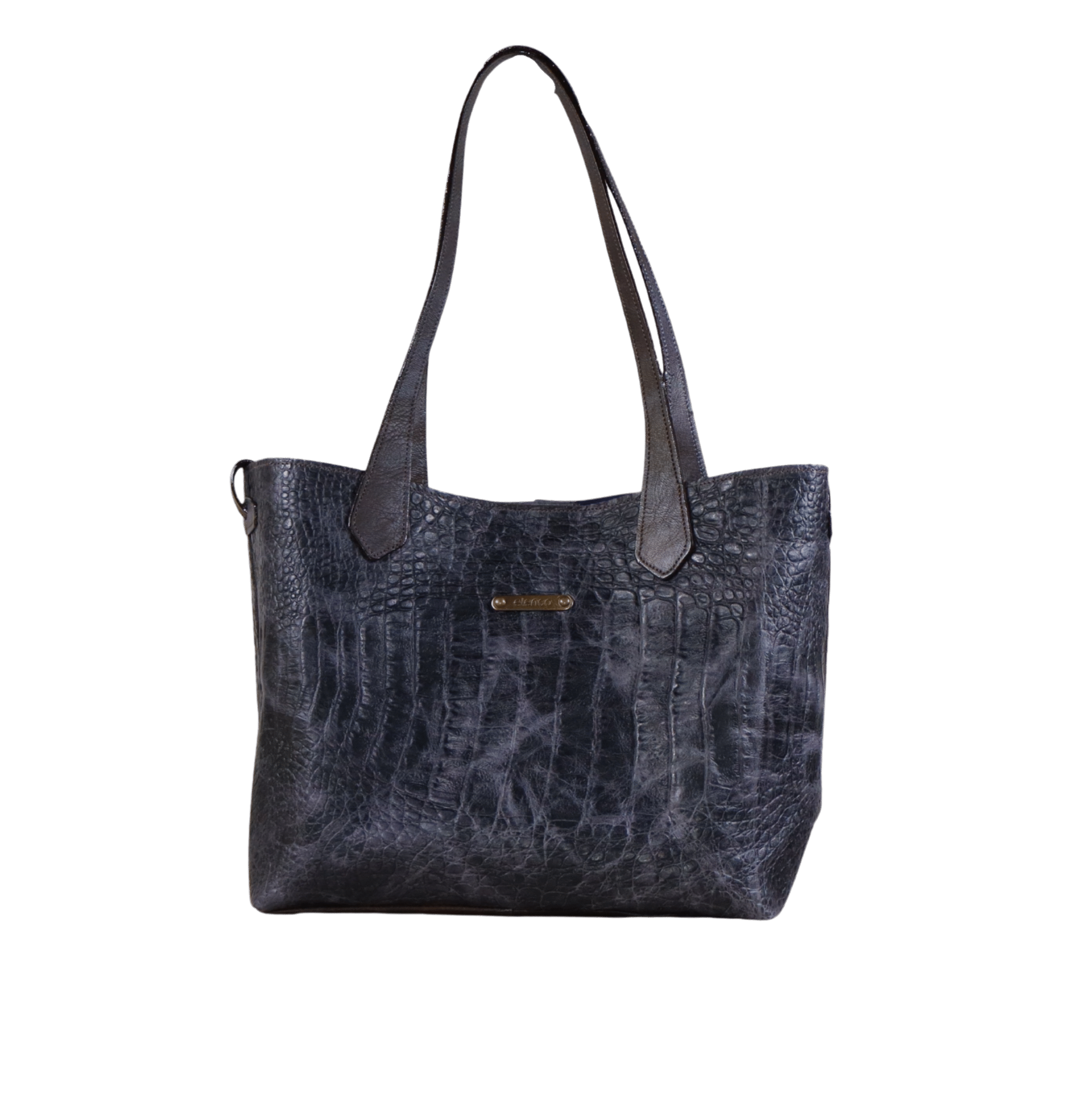 Mala média de ombro de duas alças com mola magnética no bolso principal. Bolsa interior fixa. Três bolsos interiores e logótipo em metal aplicado diretamente na pele.