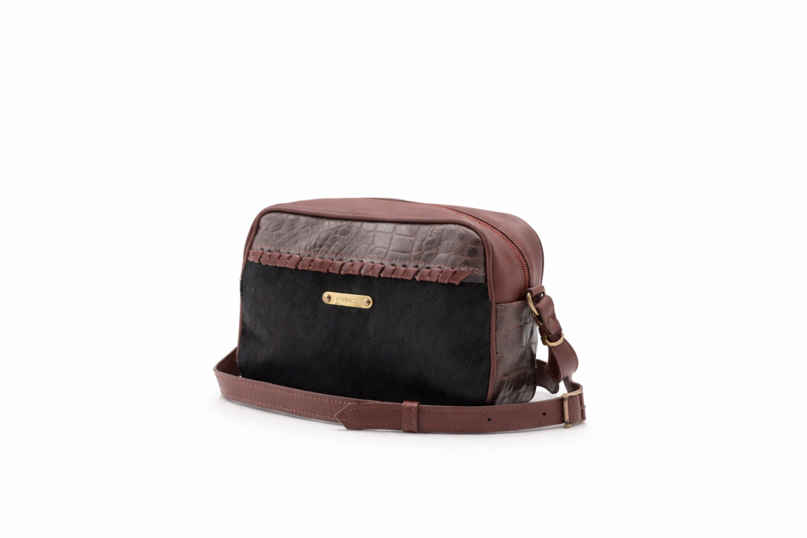 Mala pequena a tiracolo. Fecho de correr no bolso principal e no traseiro. Três bolsos interiores. Logótipo de metal aplicado diretamente na pele. Exterior: 100% pele ovina;