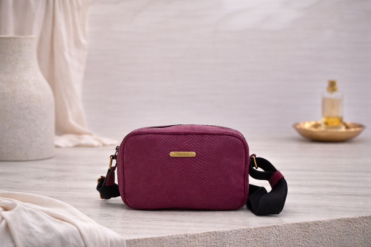 Crie laços duradouros com a sua mala Elenco, evitando a exposição prolongada à luz intensa e o contacto com produtos oleosos, com solventes ou álcool (como perfume, por exemplo). Proteja-a da chuva forte e evite o contacto com superfícies abrasivas que podem danificar a pele. Nas malas Elenco de tons escuros, evite o contacto prolongado com tecidos de cores claras, especialmente em ambientes húmidos; nas malas Elenco de tons claros, evite o atrito com outros materiais ou impressões cujas cores se possam desgastar (como jeans, por exemplo). Aconselhamos, ainda, que guarde a sua mala Elenco no saco de pano que lhe oferecemos a cada encomenda, longe de fontes de luz, humidade e calor.