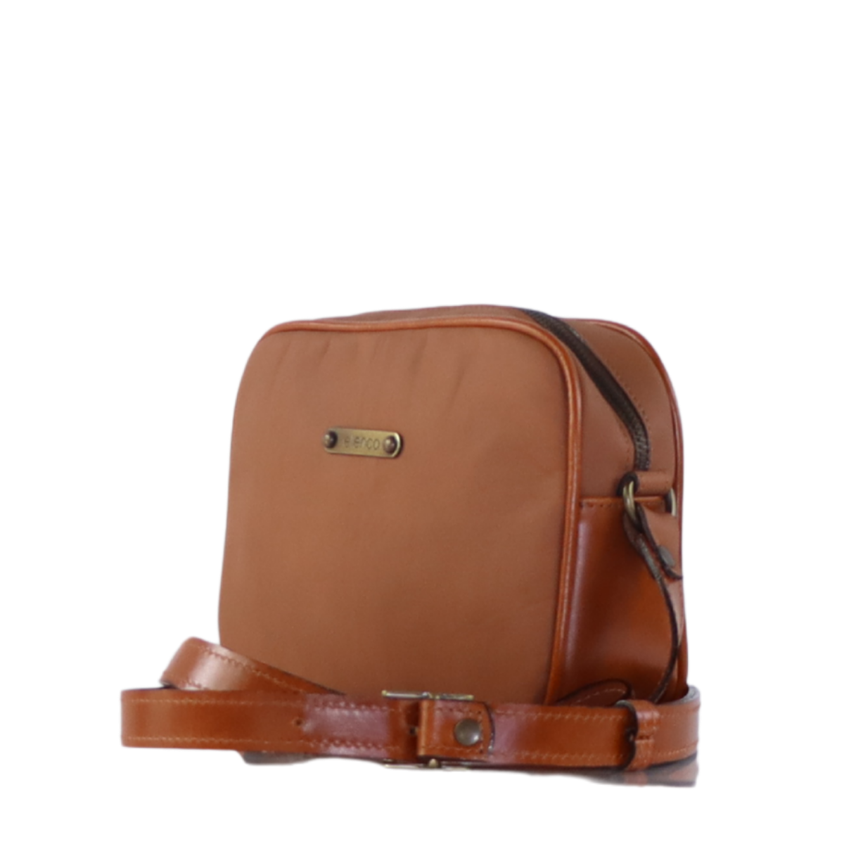 Mala pequena a tiracolo. Fecho de correr no bolso principal e no traseiro. Três bolsos interiores. Logótipo de metal aplicado diretamente na pele. Exterior: 100% pele ovina;